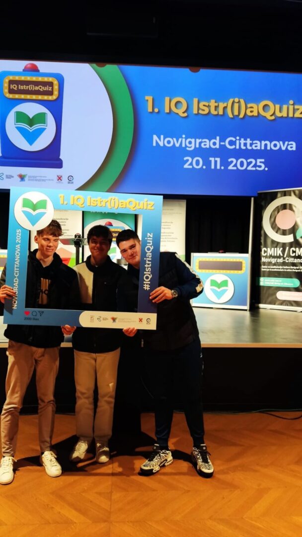 Učenici naše škole sudjelovali su u 1. zavičajnom kvizu IQ Istr(i)aQuiz, održanom u Novigradu 20.11. 2025. godine i osvojili izvrsne rezultate- nakon plasmana kroz kvalifikacije, kao finalisti osvojili su 3. mjesto!